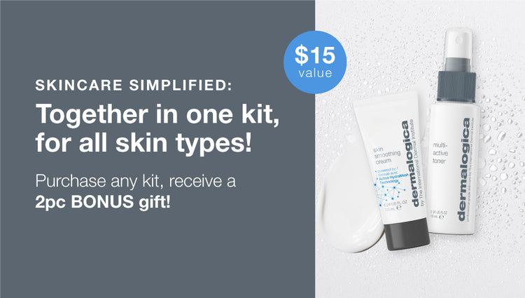 together in one kit, for all skin types. receive a 2pc bonus gift with purchase of any kit