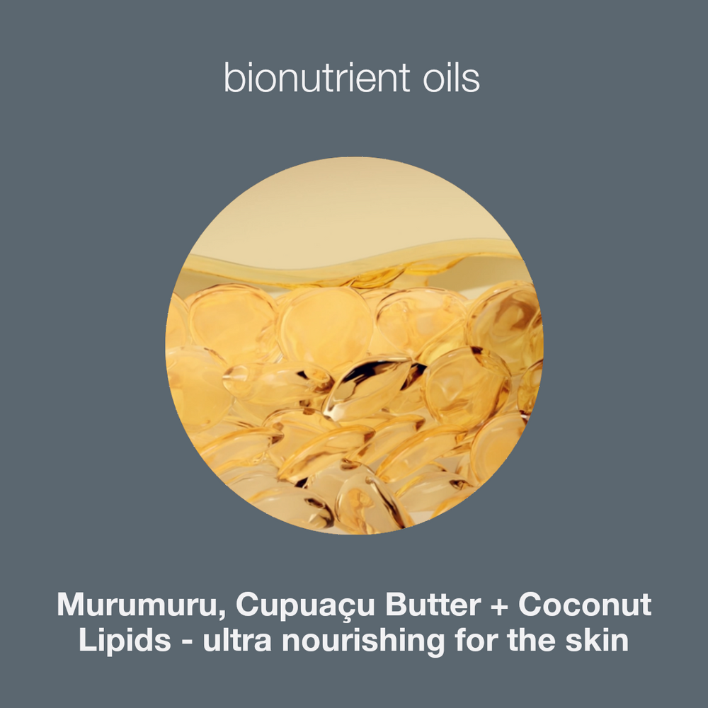 C15-19 Alkane, Simmondsia Chinensis (Jojoba) Seed Oil, Caprylic/Capric/Lauric Triglyceride, C10-18 Triglycerides, Squalane, Glyceryl Behenate/Eicosadioate, Triheptanoin, Cocos Nucifera (Coconut) Fruit Extract, Polyglyceryl-2 Isostearate, Ethylhexyl Polyhydroxystearate, Candida Bombicola/Glucose/Methyl Rapeseedate Ferment, Pongamia Glabra Seed Oil, Polyglyceryl-6 Polyricinoleate, Caprylic/Capric Triglyceride, Glycerin, Oryza Sativa (Rice) Bran Extract, Triolein, Astrocaryum Murumuru Seed Butter, Butylene/Ethylene/Styrene Copolymer, Coriandrum Sativum (Coriander) Seed Oil, Haematococcus Pluvialis Oil, Ubiquinone, Rosmarinus Officinalis (Rosemary) Leaf Extract, Lavandula Hybrida Oil, Pelargonium Graveolens Flower Oil, Anthemis Nobilis Flower Oil, Salvia Sclarea (Clary) Oil, Carthamus Tinctorius (Safflower) Seed Oil, Adansonia Digitata Seed Oil, Prunus Amygdalus Dulcis (Sweet Almond) Oil, Helianthus Annuus (Sunflower) Extract, Theobroma Grandiflorum Seed Butter, Macadamia Ternifolia Seed Oil, Astragalus Membranaceus Root Extract, Spilanthes Acmella Flower/Leaf/Stem Extract, Alaria Esculenta Extract, Aniba Rosodora (Rosewood) Wood Extract, Tocopherol, Palm Alcohol, Methyl Glucose Sesquistearate, Bacillus Ferment, Acetyl Hexapeptide-8, Astaxanthin, Glyceryl Dioleate, Cetyl Ethylhexanoate, Glyceryl Caprate, Glyceryl Caprylate, Lecithin, Water/Aqua/Eau, Glyceryl Laurate, Polyglyceryl-3 Laurate, Sodium Hydroxide, Phytosteryl Canolate, Linalool, Citronellol, Geraniol, Limonene.