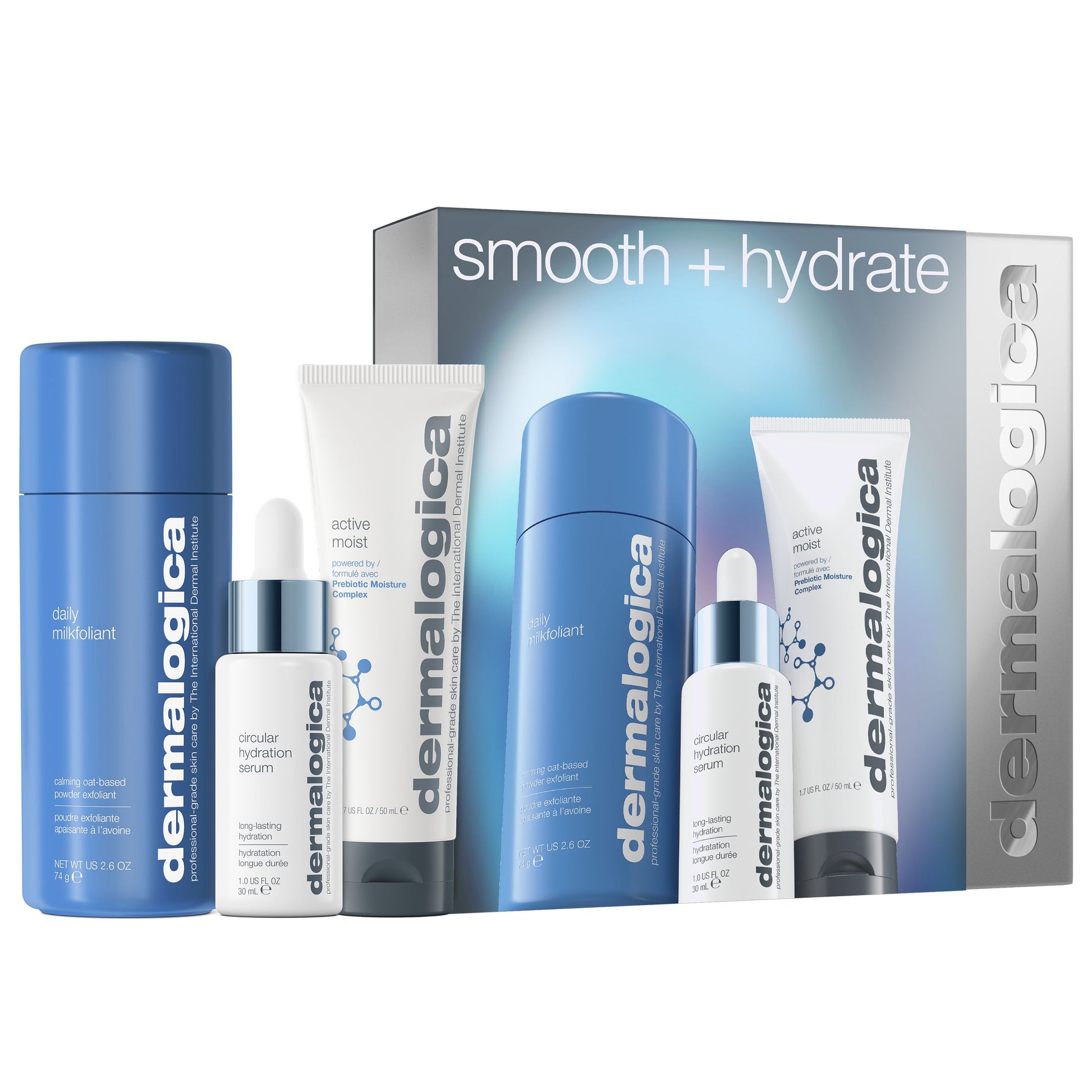 Exfoliate and moisturize your way to glowing, replenished skin. Daily Milkfoliant calms and polishes; Circular Hydration Serum floods skin with hydration and replenishes from within; and prebiotic Active Moist hydrates to smooth skin’s texture. The result: smooth, hydrated skin every day.