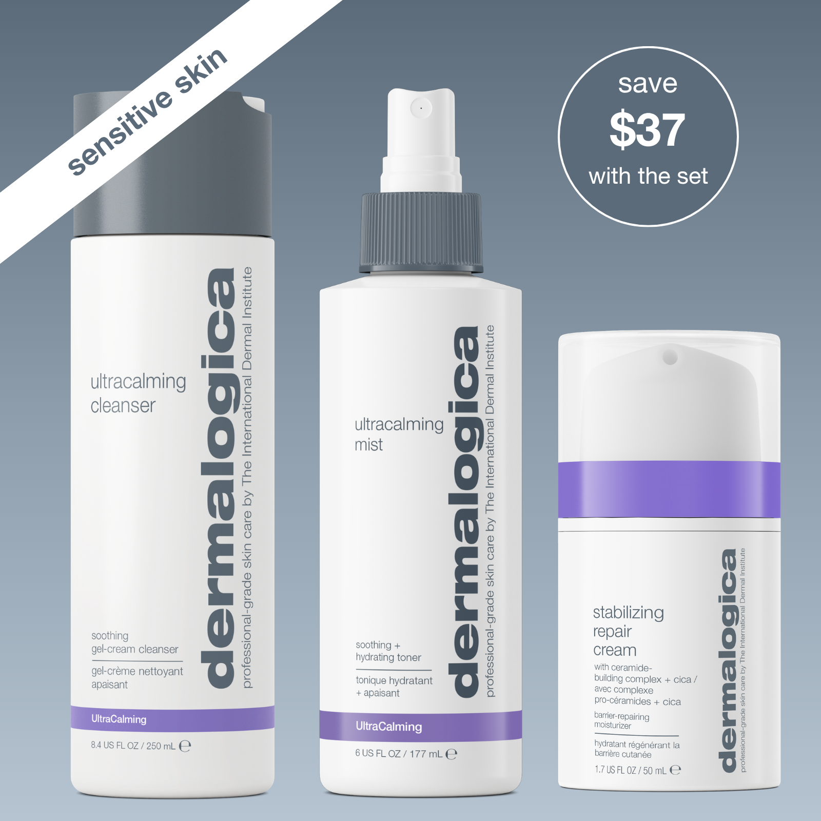 Calm, soothe, and stabilize reactive skin with this complete UltraCalming™ system designed to reduce visible redness and support a stronger skin barrier. Start with a gentle, non-foaming cleanser to remove impurities without irritation. Follow with a soothing mist to calm sensitivity and boost hydration. Finish with a rich, balmy cream to comfort skin, reduce redness, and help build resilience over time.